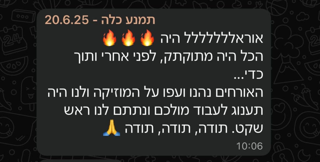 אמאלה כמה שאין דרך להסביר את התחושות והוויבים שיצרתם אצלנו באירוע.